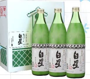 白星は当蔵伝承の醸造方法により醗酵する醗酵菌を熱処理しないで、もろみを粗ごしした生の酒をそのままビン詰めした、米の粒子や酵母がそのまま残っている活性清酒です。